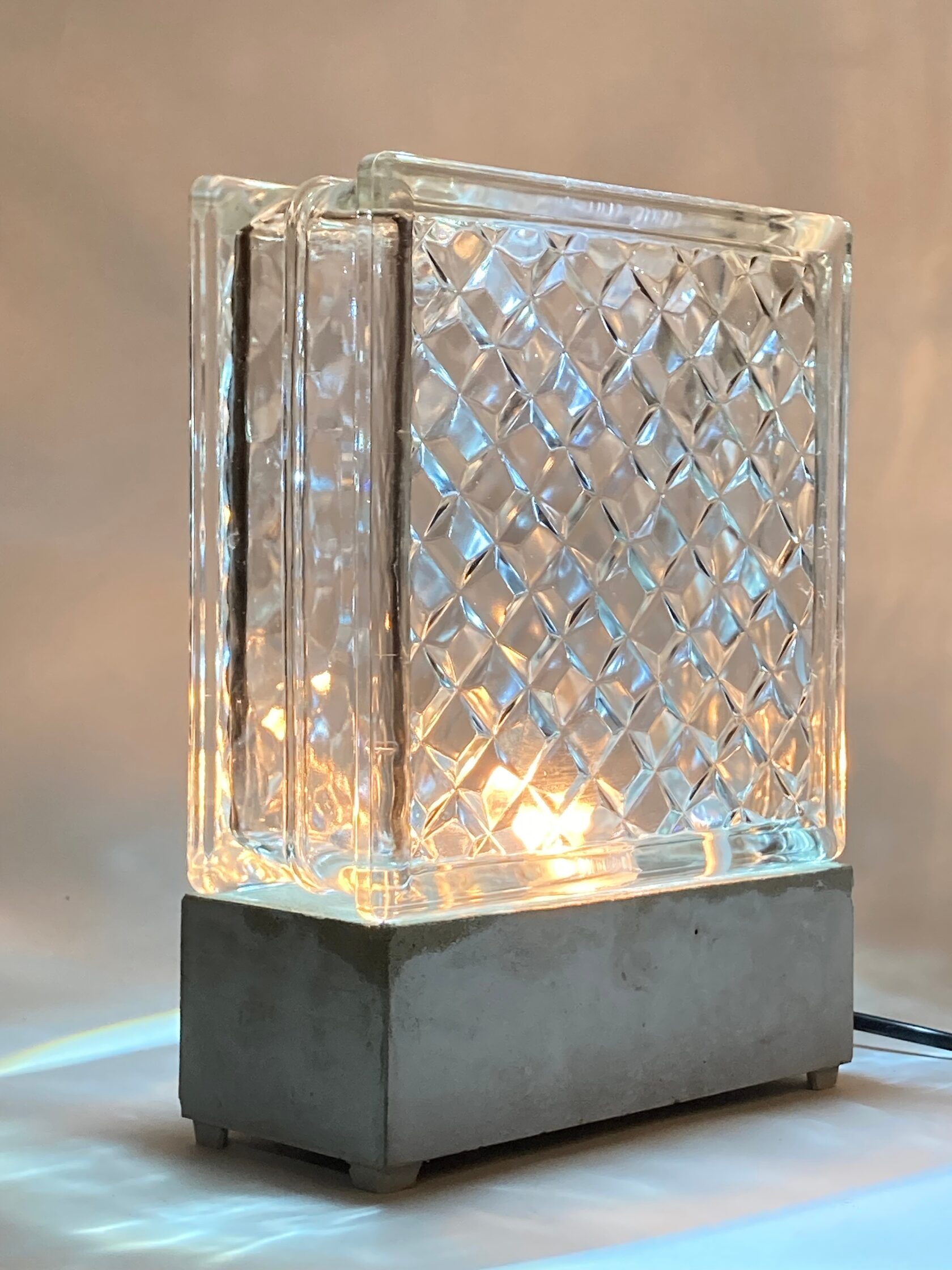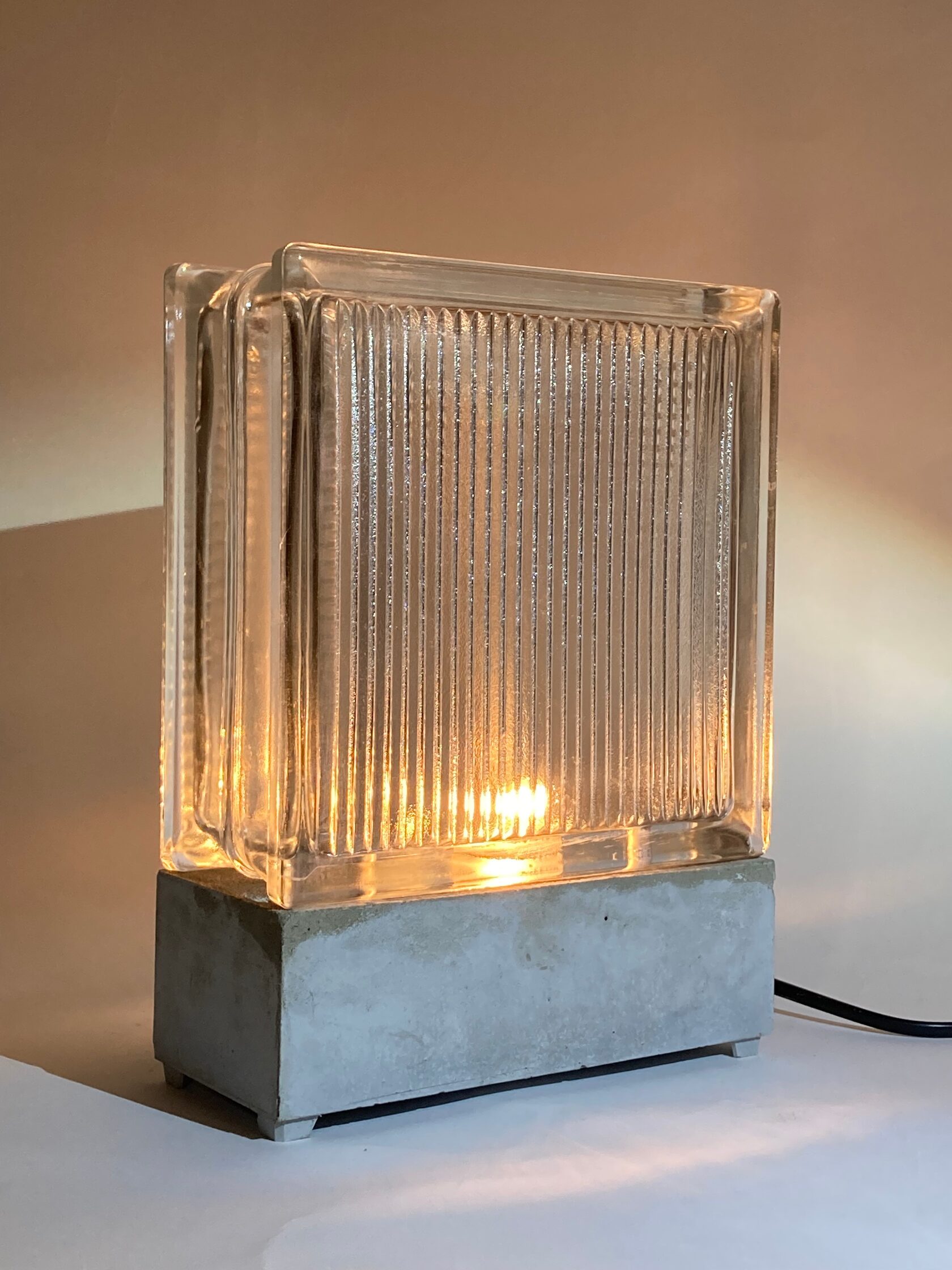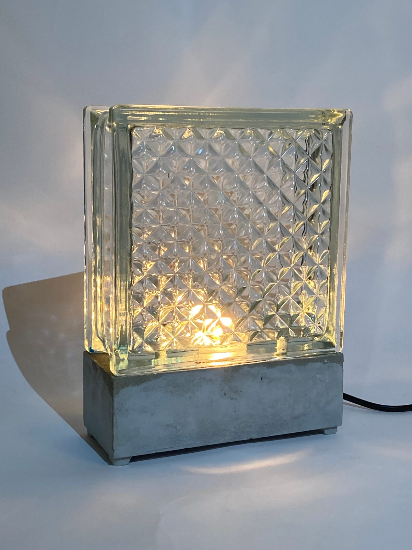 Стеклоблок с историей, могут быть небольшие сколы, незначительное количество строительного раствора (так как некоторые стеклоблоки получены из разобранных стен). Размеры стеклоблока 190х190х100 мм, размеры подставки 190х65х100мм
